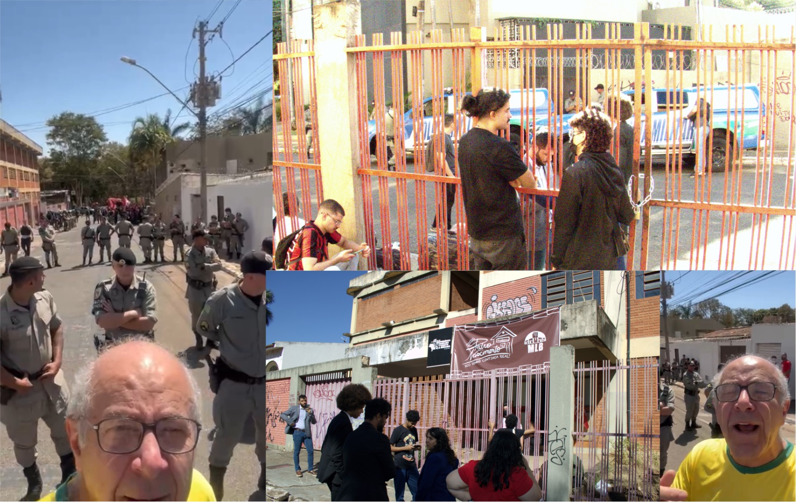 Sem apresentar decisão judicial de despejo, por volta de 9h da manhã, a Polícia Militar de Goiás (PMGO) apareceu no local com um arsenal que incluía helicóptero, motos de alta cilindrada das forças especiais, dezenas de viaturas, todos com armamento pesado para desocupar o imóvel de forma truculenta e ilegal, mas a presença do deputado Mauro Rubem, advogados e pessoas ligadas aos direitos humanos cavou uma reunião emergencial entre as partes.