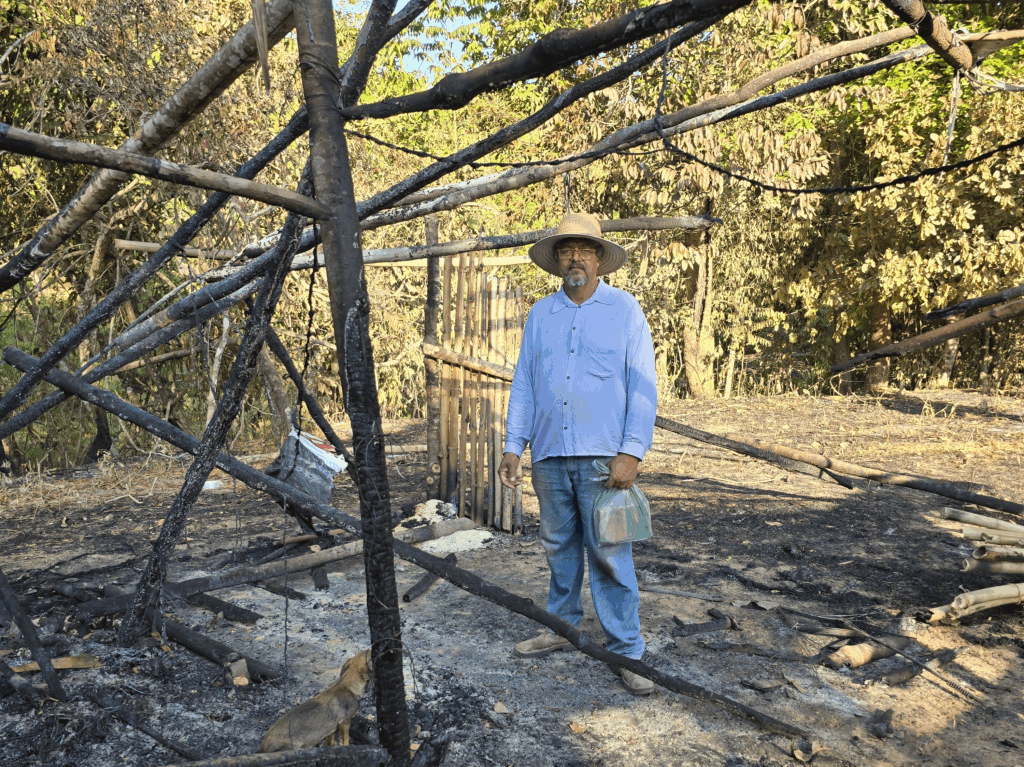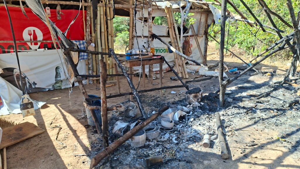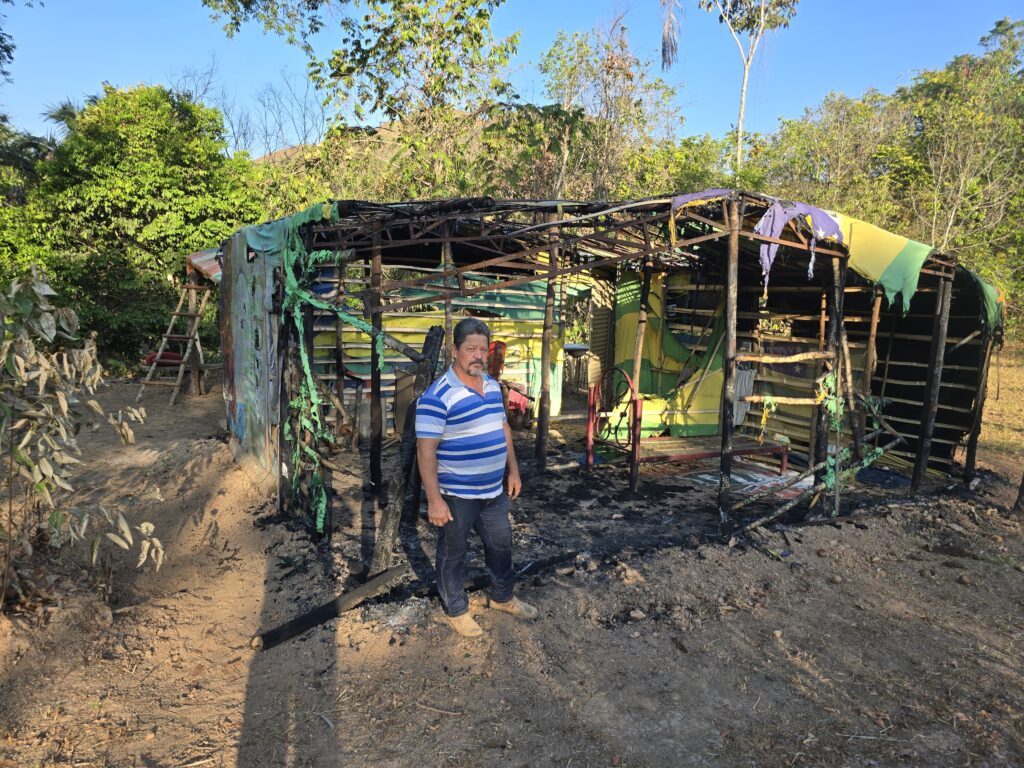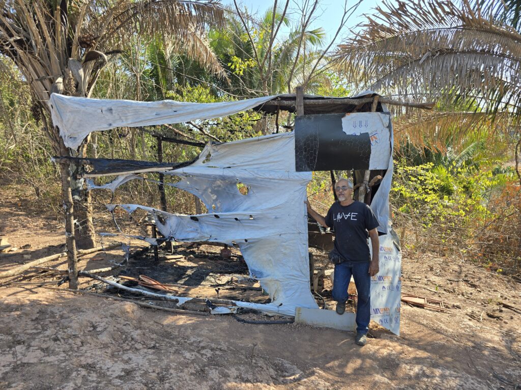 “Aqui eu tinha maquinário, milho e ferramentas. O que não levaram, queimaram. Nós viemos para produzir, não para viver em barracos. Já são nove anos de luta”, relatou Juvenil Pires.