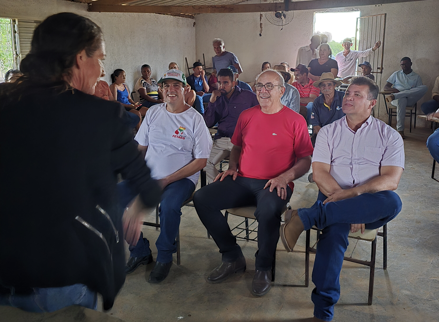 O deputado se reuniu com assentados da reforma agrária dos Assentamentos Novo Horizonte 2 e Muriá, em um encontro que contou com a presença do prefeito Elieudes Dias e do presidente da Fetaeg, Eleandro Borges.